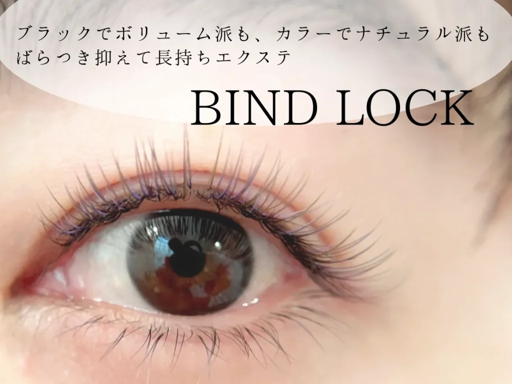 バインドロックは、自まつ毛を上下からデザインに合わせたエクステで挟み込む(バインドする)技術です。